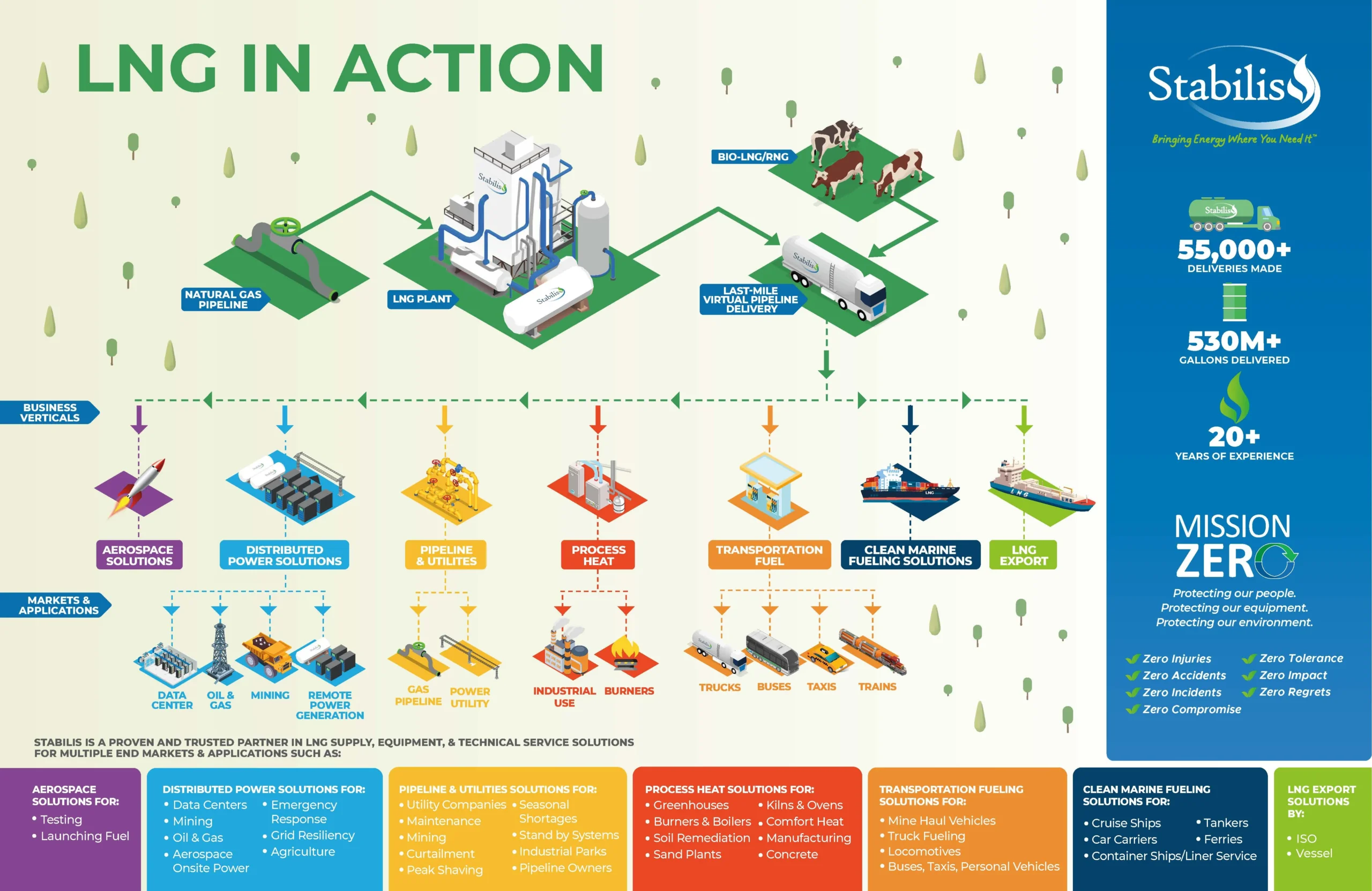 An experienced LNG provider with two permitted, owned, and operated PHMSA facilities and additional LNG infrastructure projects in development, Stabilis provides 24/7, 365-day LNG supply and unmatched expertise to our customers. This, combined with our 30+ point supply network across North America, ensures critical LNG know-how and reliable LNG supply when and where you need it.